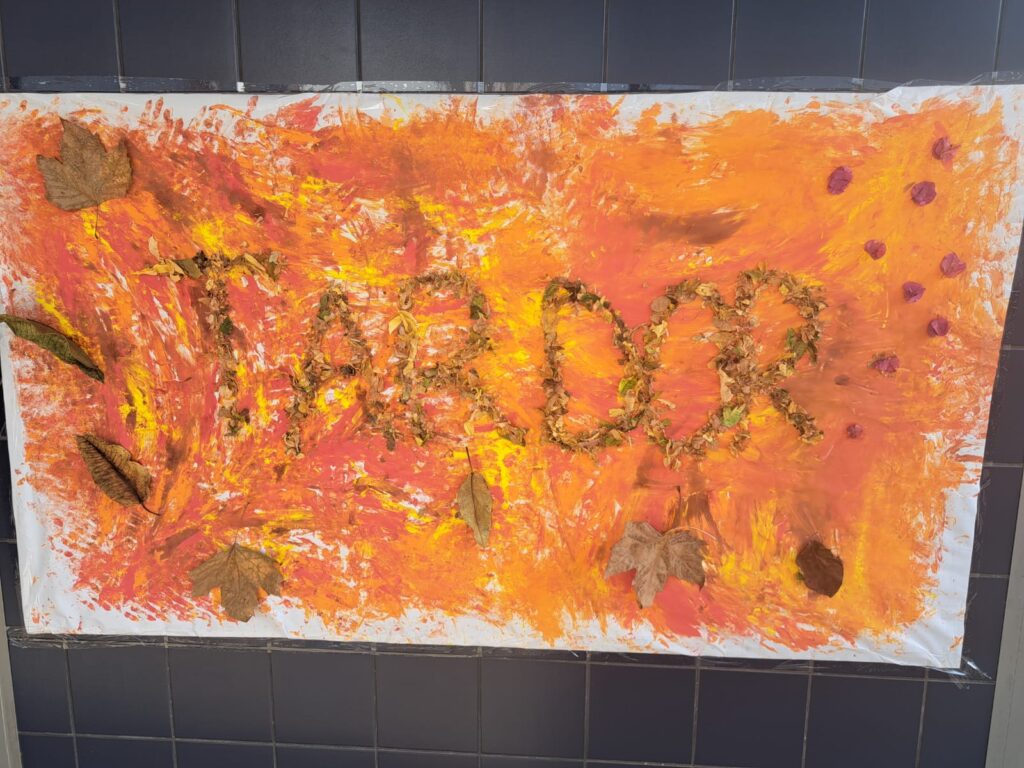 • Mural del otoño: con las hojas recogidas hicieron un mural muy divertido y original para colgar en el cole.