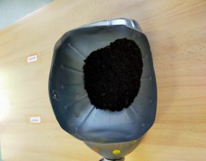 Introducimos agua en la garrafa inferior, y desde la superior, a través del agujero realizado, metemos algodón. Finalmente, en el embudo construido con la primera garrafa, añadimos abono y unas cuentas semillas.