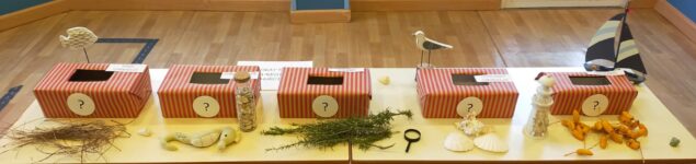 En la EI Tizas, en San Javier (Murcia), han realizado una provocación sensorial, mediante la cual tenía que averiguar los elementos que se escondían en el interior de las «cajitas misteriosas». A través del tacto, vista y olfato, los niños y niñas de la escuela han conocido y aprendido animales y plantas propias de la comunidad de Murcia: caballito de mar, conchas-caracolas, pino carrasco,